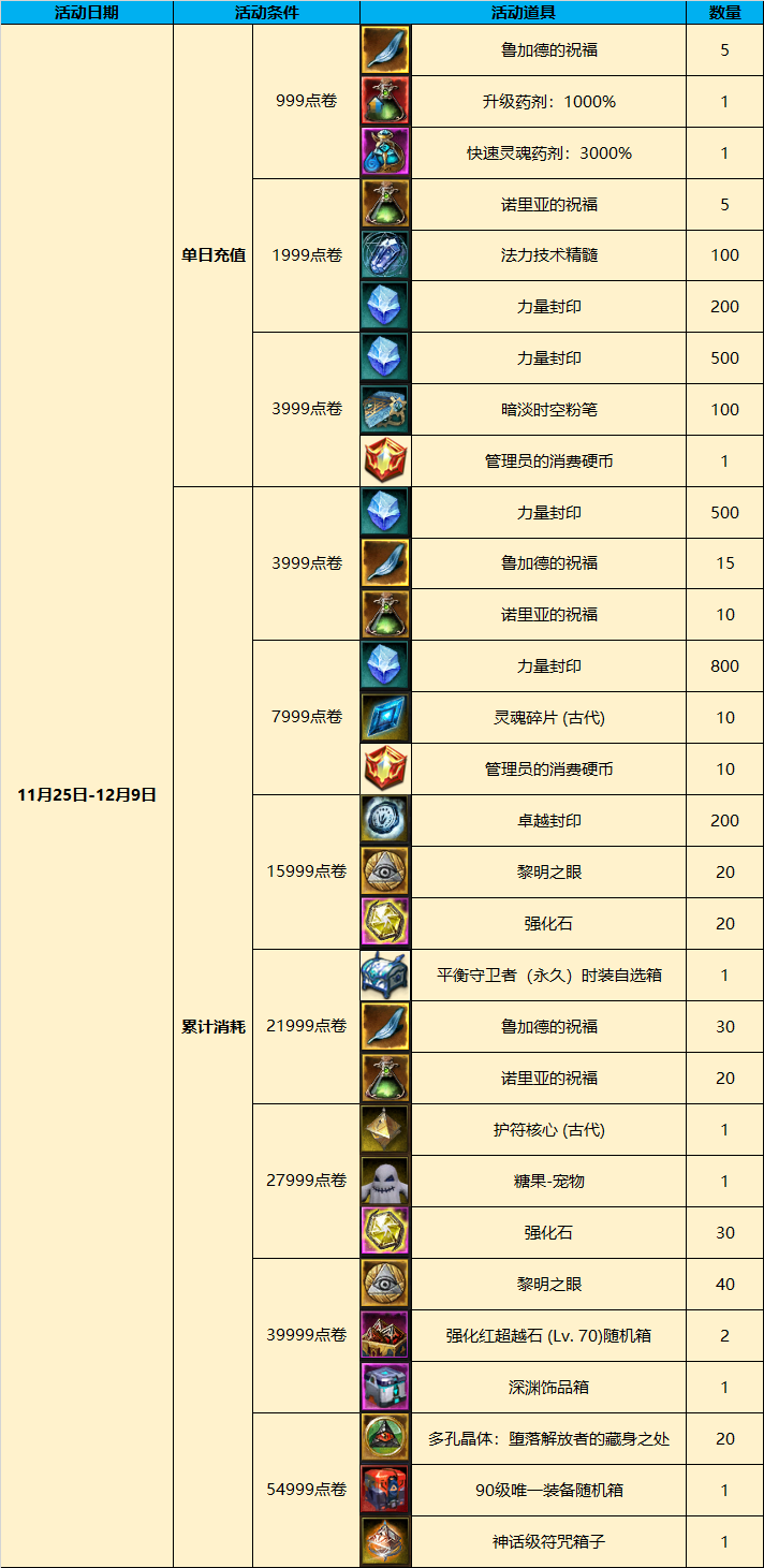 3. 11月25日12:00-12月9日10:00,玩家充值点卷或消耗点卷需要达到指定金额才可获得对应活动奖励,充值或消耗成功后奖励获取界面可能存在1-2分钟的延迟;