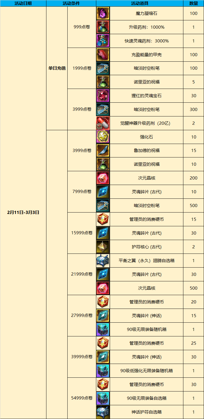3. 2月11日10:00-3月3日23:59,玩家充值点卷或消耗点卷需要达到指定金额才可获得对应活动奖励,充值或消耗成功后奖励获取界面可能存在1-2分钟的延迟;